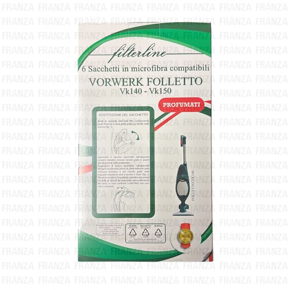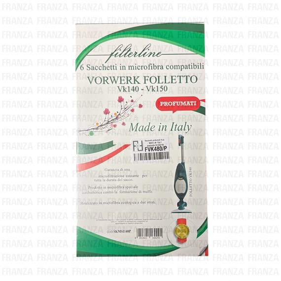 Ricambi VK140 VORWERK - FVK480/P Adattabile Folletto VK140Made in ItalySacchetti PROFUMATI in microfibra confezione scatolata 6 pezzi Prezzo: riservato utenti iscritti Dettagli