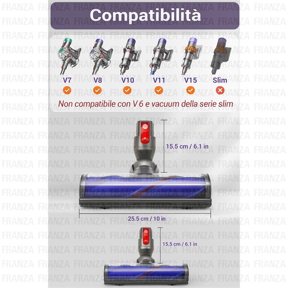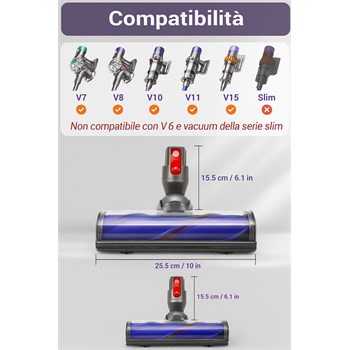 Spazzole DYSON - FDY0109 Spazzola con doppio rullo, setole morbide e 4 ruoteAdattabile per Dyson V7 V8 V10 V1123,2 x 25,3 x 6,5 cm Prezzo: riservato utenti iscritti Dettagli
